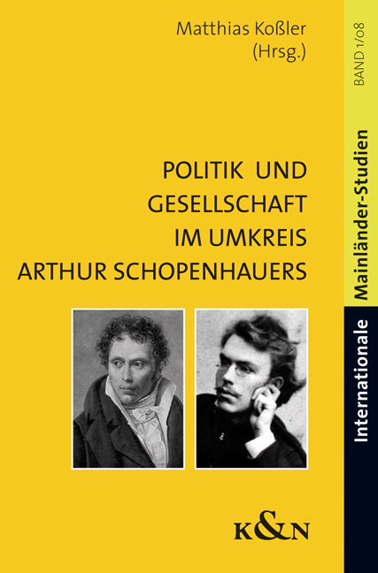 Um das Thema Schopenhauer und die Politik ins Bewußtsein der Öffentlichkeit zu rücken und um einen ersten Überblick über mögliche Forschungsfelder zu geben, wurde im Herbst 2005 von der Schopenhauer-Gesellschaft in Frankfurt eine kleine Tagung mit dem Titel Politik und Gesellschaft im Umkreis Arthur Schopenhauers veranstaltet, deren Beiträge im vorliegenden Band veröffentlicht werden. An den Anfang ist im Sinne einer Einführung in das Thema eine Darlegung allgemeiner Grundgedanken und -probleme gesetzt, die sich aus dem Werk und auch aus der Biographie Schopenhauers ableiten lassen, teils um den mit Schopenhauer noch nicht so vertrauten Leser mit ihnen bekannt zu machen, teils um sie zusammenfassend in Erinnerung zu bringen. Ihm folgen zwei Arbeiten über Schopenhauer, die zwei bisher kaum behandelte Aspekte seines Verhältnisses zu Politik und Gesellschaft thematisieren, und zwei Beiträge aus dem Umkreis Schopenhauers mit einem abschließenden Schwerpunkt bei Philipp Mainländer. Die Internationale Philipp Mainländer-Gesellschaft sieht eine ihrer Aufgaben darin, die Diskussion um sein Verhältnis zu Schopenhauer zu fordern und zu fördern. Für die dafür unerläßliche Zusammenarbeit mit der Schopenhauer-Gesellschaft ist dieser Tagungsband, der als Band 1 der Mainländer-Studien erscheint, ein erstes Beispiel. Die Herausgeber Matthias Koßler ist apl. Professor für Philosophie an der Universtiät Mainz. Winfried H. Müller-Seyfarth, Dr. phil., studierte Philosophie und Germanistik; Herausgeber der Werke von Philipp Mainländer und Julius Bahnsen.